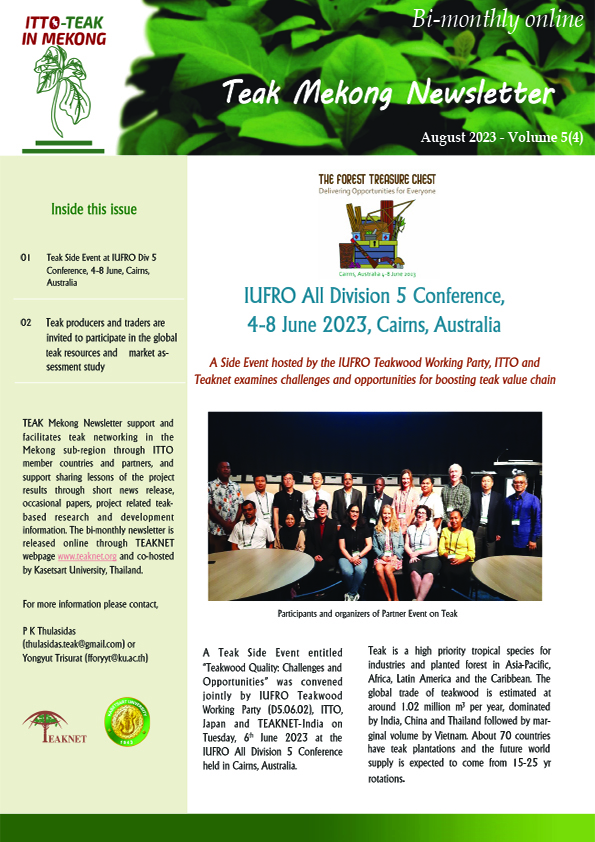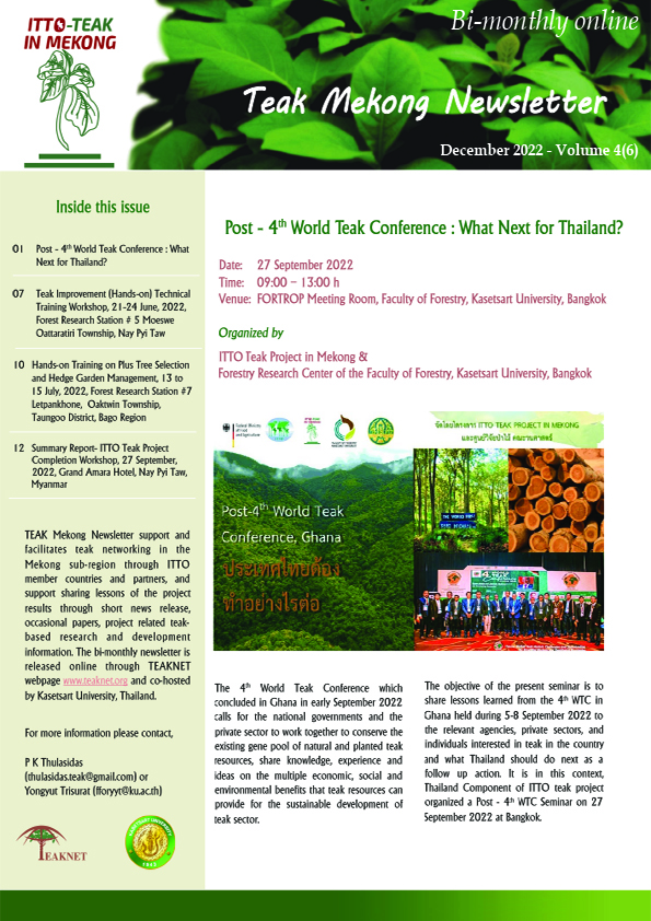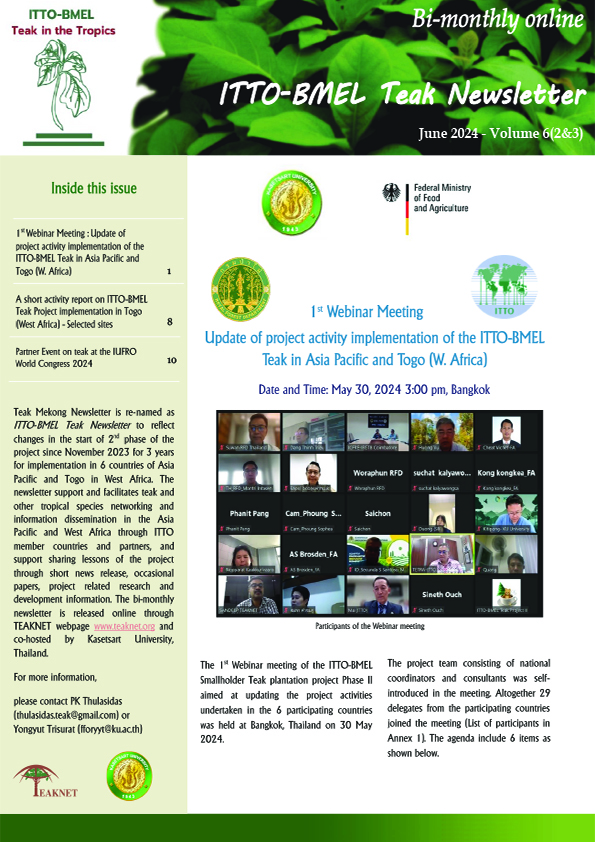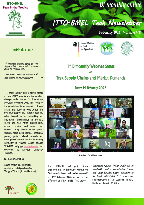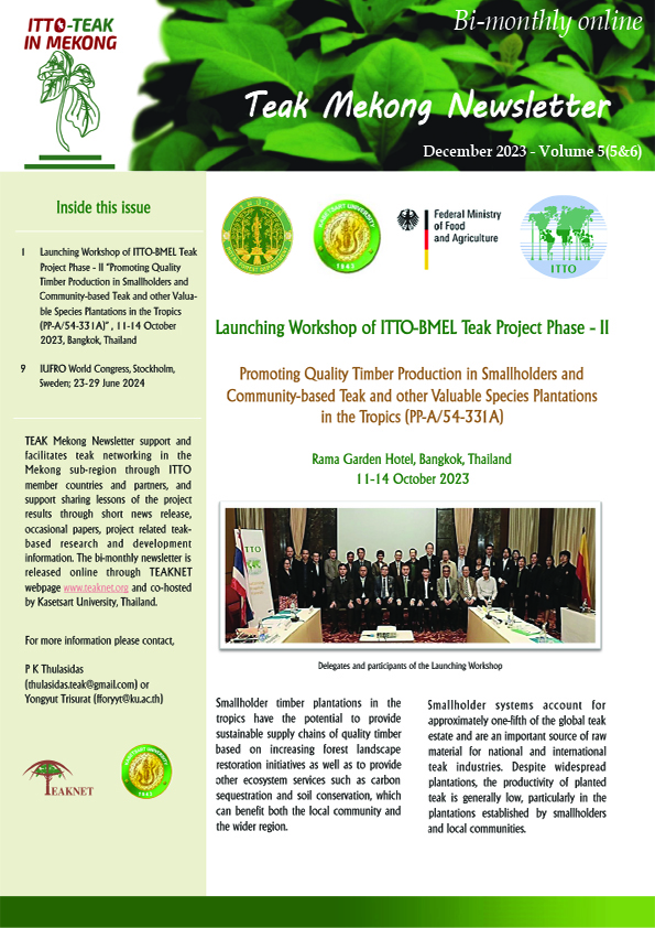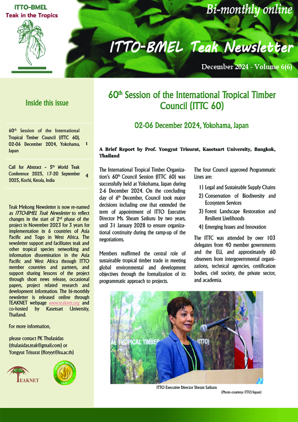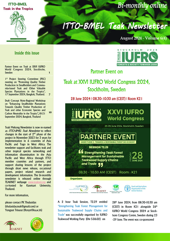 ITTO-BMLEH (PP-A/54-331A) "PROMOTING QUALITY TIMBER PRODUCTIONIN SMALLHOLDERS AND COMMUNITY-BASED TEAK ANDOTHER VALUABLE SPECIES PLANTATIONSIN THE TROPICS" NEWSLETTER ITTO BMLEH Newsletter 4-6 DOWNLOAD ITTO BMLEH Newsletter 5-1&2 DOWNLOAD ITTO BMLEH Newsletter 5-4 DOWNLOAD ITTO BMLEH Newsletter 5-5&6 DOWNLOAD ITTO BMLEH Newsletter 6-2&3 DOWNLOAD ITTO BMLEH Newsletter 6-4 DOWNLOAD ITTO BMLEH Newsletter 6-5 DOWNLOAD ITTO BMLEH Newsletter 6-6 DOWNLOAD ITTO BMLEH Newsletter 7-1 DOWNLOAD ITTO BMLEH Newsletter 7-2 DOWNLOAD ITTO BMLEH Newsletter 7-3 DOWNLOAD ITTO BMLEH Newsletter 7-4 DOWNLOAD